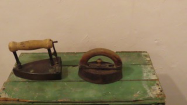 According to the names listed here, a long-forgotten 19th century Hispano woman, Petra Mestas Ortega, of a well-known family of weavers, bore fourteen children in this village. That means she bore a child at short intervals for most of her reproductive life and toiled to raise them. The flatirons commemorate her dawn to dusk work, and the photo of two young girls, perhaps her daughters, carrying tin pails of water on their heads, establish the labor women and girls performed here every day.
