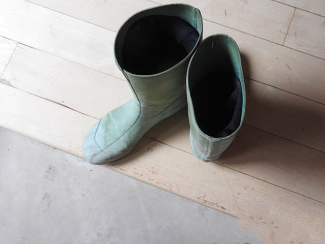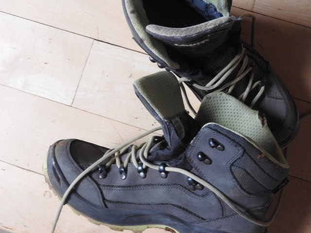 Now, to the great relief of my feet and my soul, I mostly wear boots—hiking or rubber, depending on how muddy the trails are—or sneakers, especially an orange pair with silver laces and zippers on the side.
