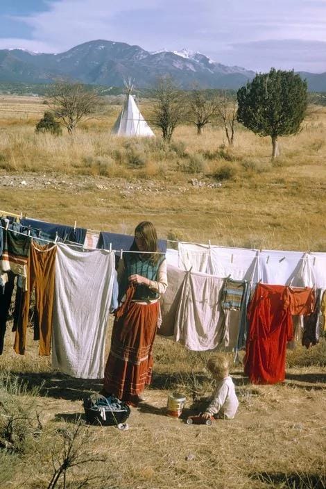 Fundamental to the failure of the sixties generation to change was the reinforcement of conventional gender roles; I remember being disheartened when I visited the much ballyhooed exhibit on the New Mexico communes—there were a lot of them—by the photos of women nursing and carrying babies, stirring stewpots, and so on. Living off the grid places heavy work on women; the men are usually somewhere else. And when I visited New Buffalo, a “repurposed” commune north of Taos, now a B&B, its commercial life seemed to me a direct contradiction of what the dreams of the original commune dwellers had been.